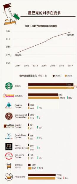 不同的是,星巴克已經(jīng)不再是一個(gè)顛覆市場(chǎng)的角色,變成守擂者。過去兩年,星巴克的競(jìng)爭對(duì)手越變?cè)蕉?。在美國從連鎖咖啡店,到麥當(dāng)勞,再到甜甜圈店唐恩都樂都在說現(xiàn)磨咖啡,星巴克也不再是一個(gè)顛覆市場(chǎng)的玩家。它正在受到來自“第三波咖啡浪潮”(Third wave of coffee)中精品咖啡館和一些打價(jià)格戰(zhàn)的快餐連鎖企業(yè)的雙重壓力。