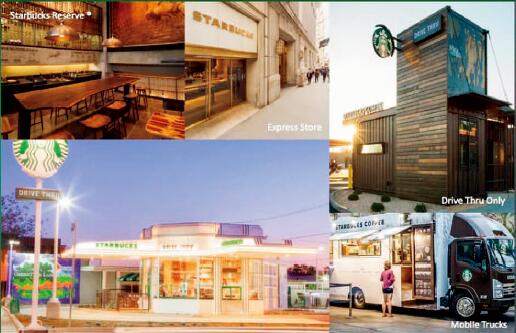 同時(shí)星巴克也在嘗試諸如得來速、便利店、流動(dòng)咖啡車等新型門店。